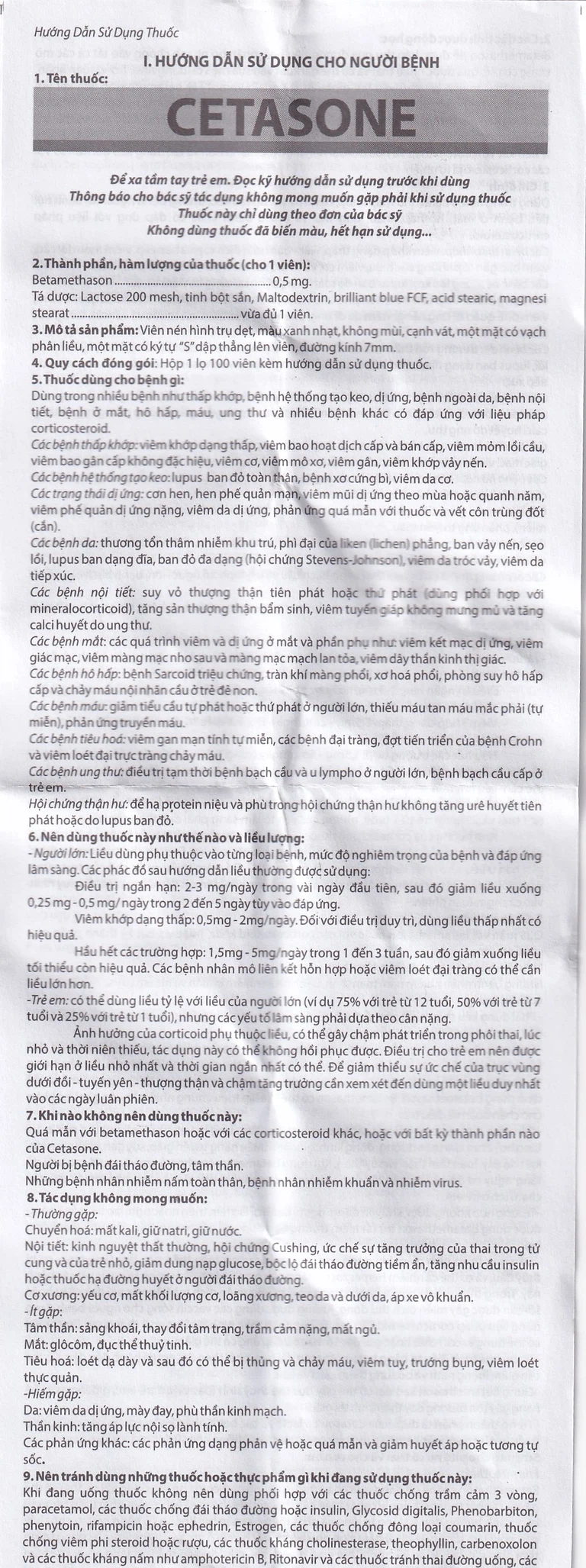 Thuốc Cetasone dùng đường uống.