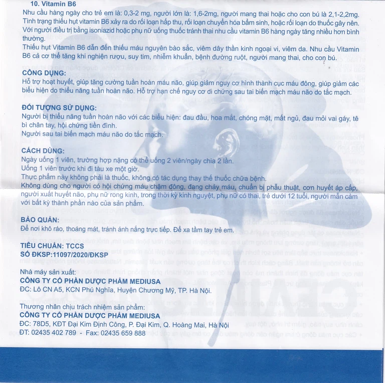 Ginkgo biloba extract, Nattokinase, Vitamin B6, Magnesi oxyd, Rau đắng biển, Cao đinh lăng, Tỏi đen, Phosphatidin serin, Coenzym Q10, Rutin, Citicolin