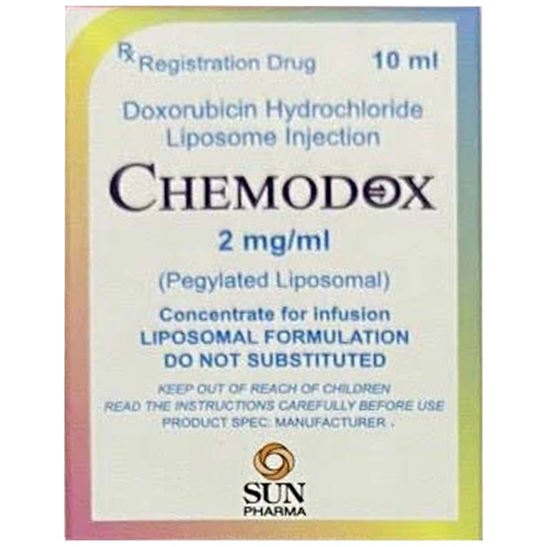 Thành phần hoạt chất củaCHEMODOXlà doxorubicin hydrochlorid dạng liposome, một kháng sinh nhóm anthracyclin gây độc tế bào thu được từStreptomyces peucetiusvar.caesius. Hiện nay vẫn không biết cơ chế chính xác của hoạt tính chống khối u của doxorubicin. Một cách tổng quát, sự ức chế DNA, RNA và quá trình tổng hợp protein chịu trách nhiệm cho phần lớn các tác động gây độc tế bào. Điều này có lẽ là kết quả của việc gắn nhóm anthracyclin giữa các cặp base liền kề của chuỗi xoắn kép DNA và như vậy, ngăn việc tháo xoắn cần thiết cho quá trình sao chép.