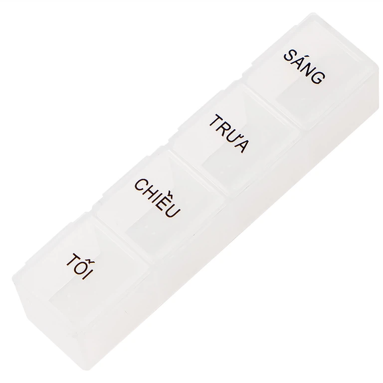 - Hộp gồm 4 ngăn dài chứa các liều thuốc “Sáng – Trưa – Chiều – Tối” giúp bạn dễ dàng lên kế hoạch và phân phối liều hàng ngày.