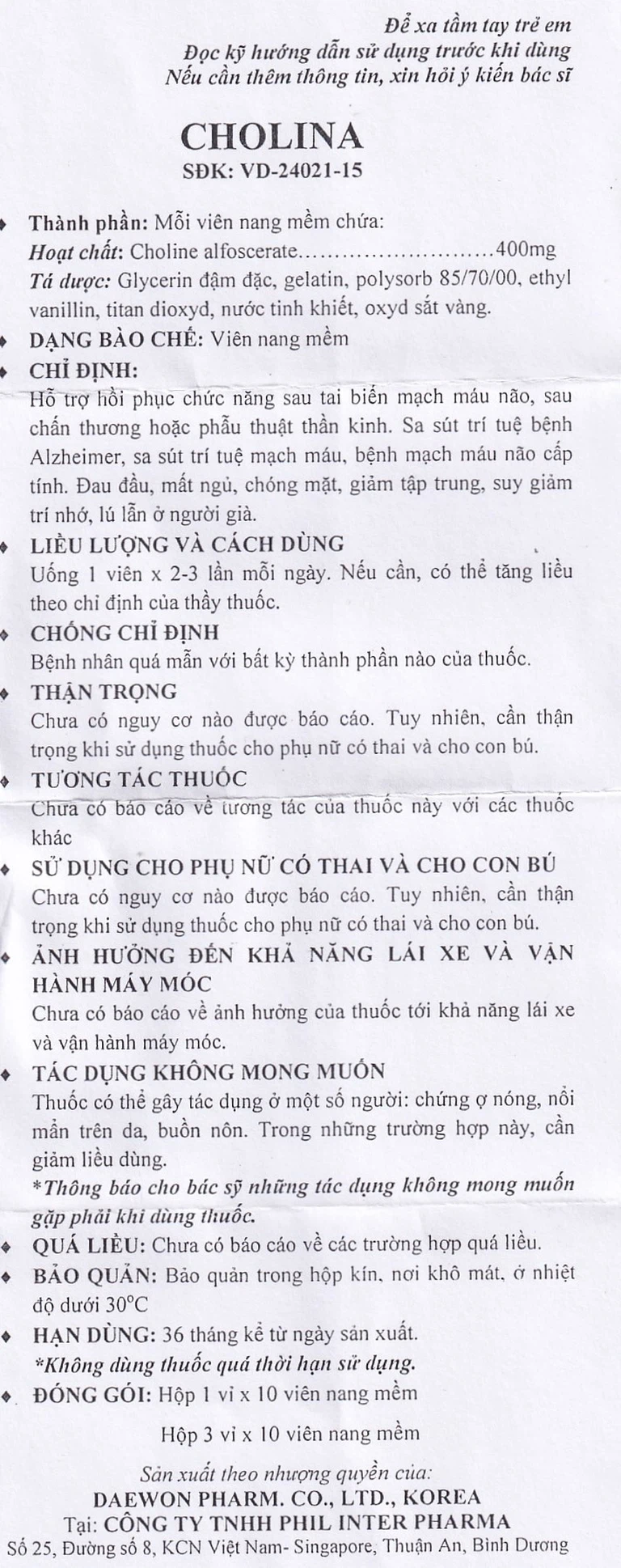 Thuốc Cholina V-400Mg dạng viên nang mềm dùng qua đường uống.