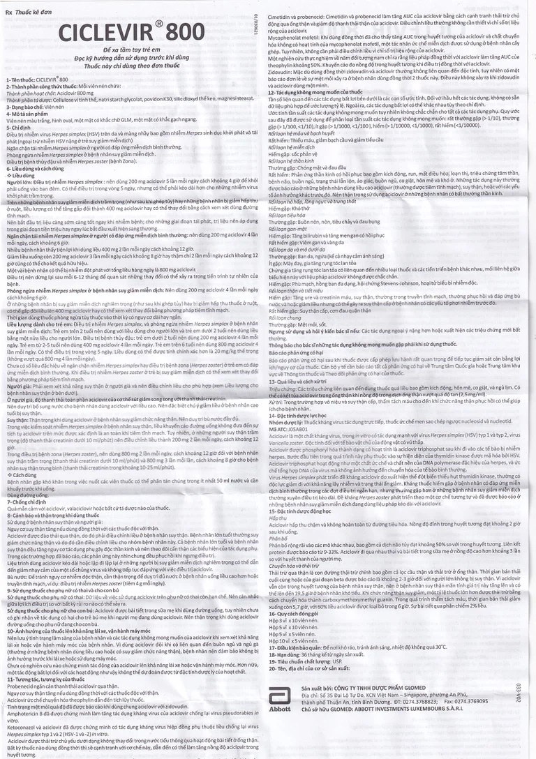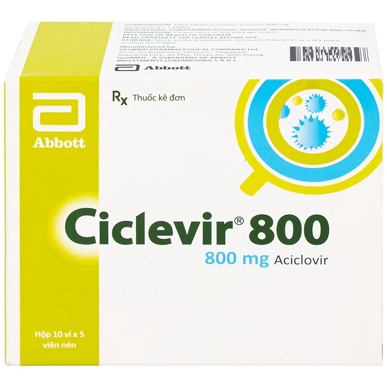 Thuốc Ciclevir 800 Abbott điều trị nhiễm virus Herpes simplex tuýp 1 và 2 (10 vỉ x 5 viên)