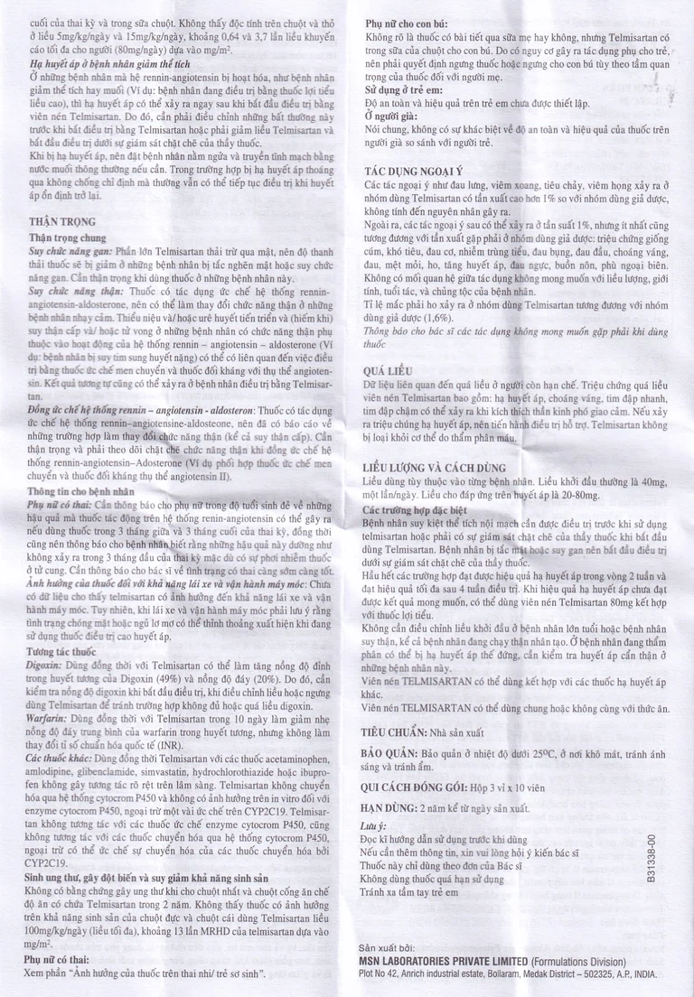 Hầu hết các trường hợp đạt được hiệu quả hạ huyết áp trong vòng 2 tuần và đạt hiệu quả tối đa sau 4 tuần điều trị. Khi hiệu quả hạ huyết áp chưa đạt được kết quả mong muốn, có thể dùng viên nén telmisartan 80mg kết hợp với thuốc lợi tiểu.