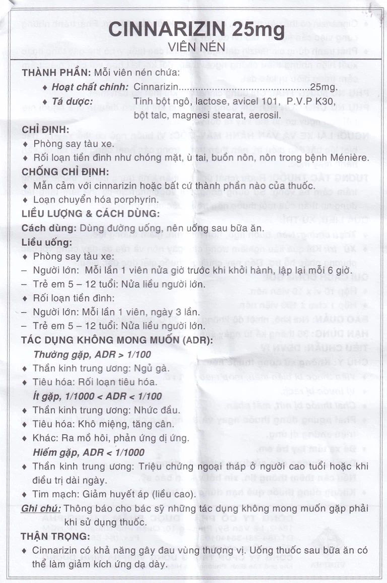 Chỉ dùng cinnarizin khi thật sự cần thiết.