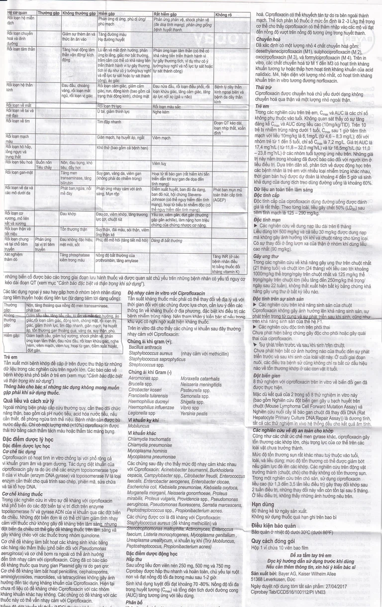 Thuốc Ciprobay 500mg Bayer điều trị nhiễm trùng (1 vỉ x 10 viên)