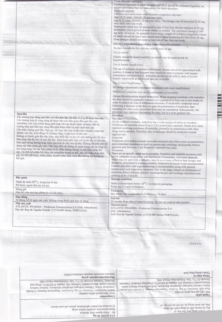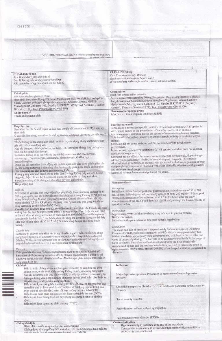 Trước khi sử dụng thuốc Clealine 50 mg, bạn cần đọc kỹ hướng dẫn sử dụng và tham khảo thông tin bên dưới.