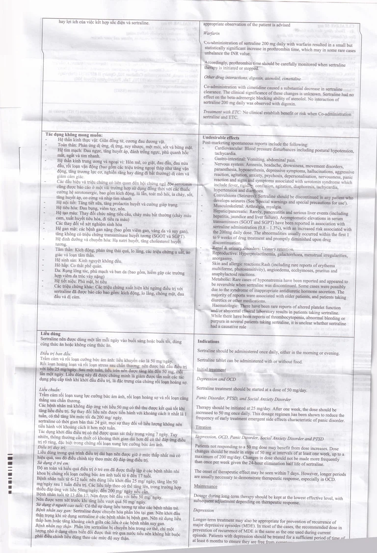 Các triệu chứng khác: Các triệu chứng xuất hiện khi ngừng điều trị với sertraline đã được báo cáo bao gồm: Kích động, lo lắng, chóng mặt, đau đầu và dị cảm.