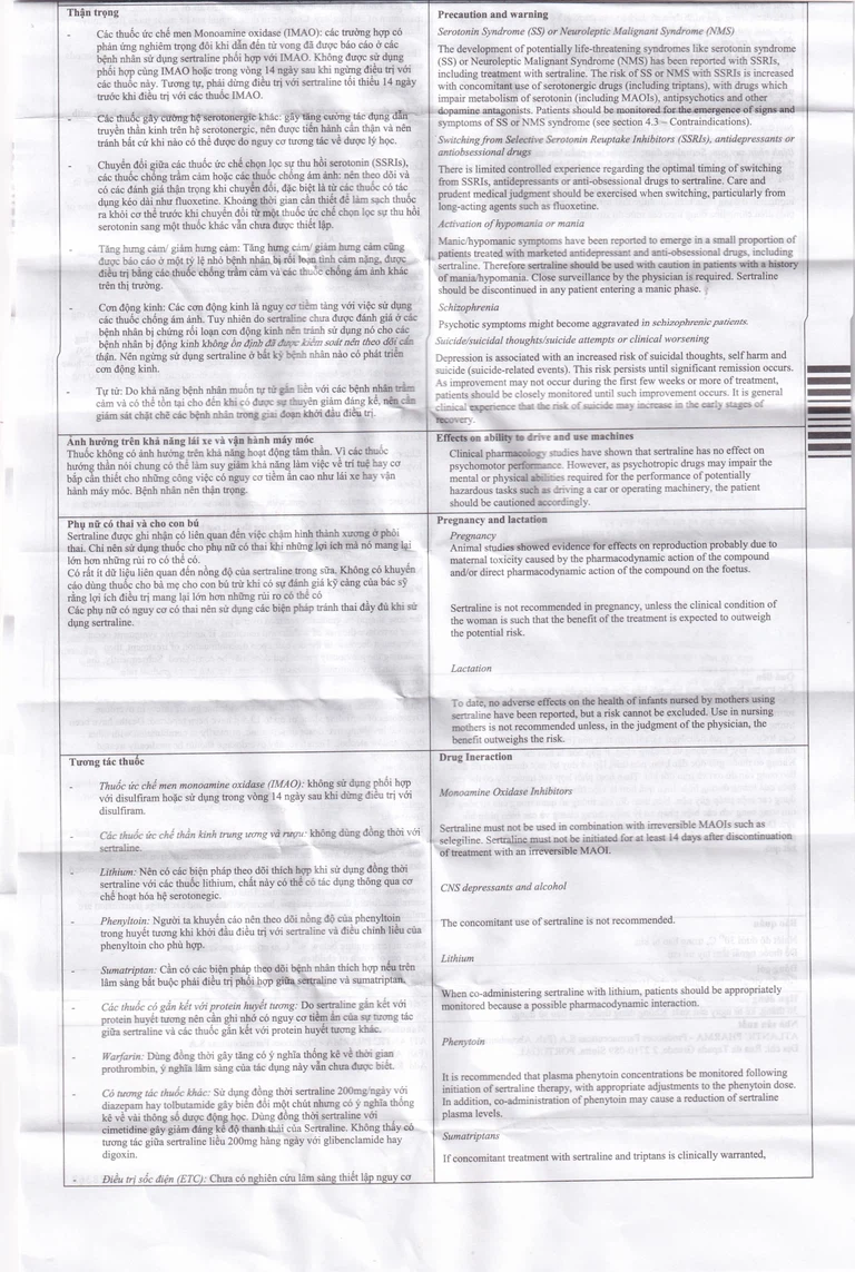 Không được sử dụng đồng thời sertraline trên các bệnh nhân đang điều trị với các thuốc ức chế men monoamine oxidase (IMAO).