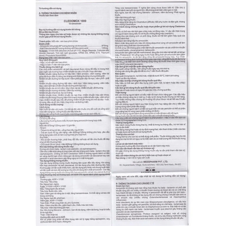 - Chống chỉ định Cledomox 1000 ở những người bệnh có tiền sử vàng dairối loạn chức năng gan do dùng amoxicilin và clavulanat hay các penicilin vi acid clavulanic gây tăng nguy cơ ở mặt trong gan.
