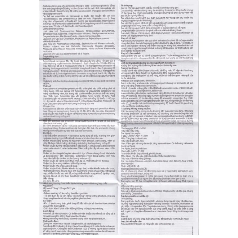 CrCI dưới 30 ml/phút: Viên 825mg/125mg không được sử dụng.