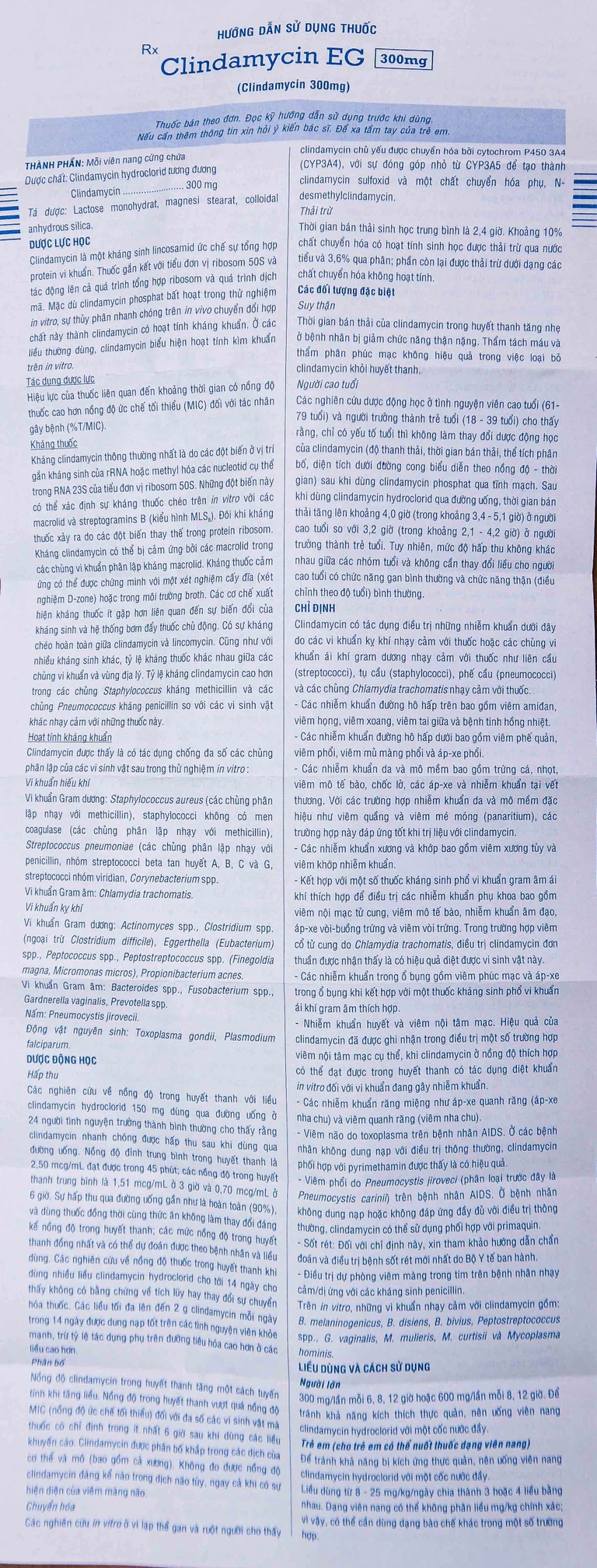 Cách dùng Thuốc Clindamycin EG 300mg