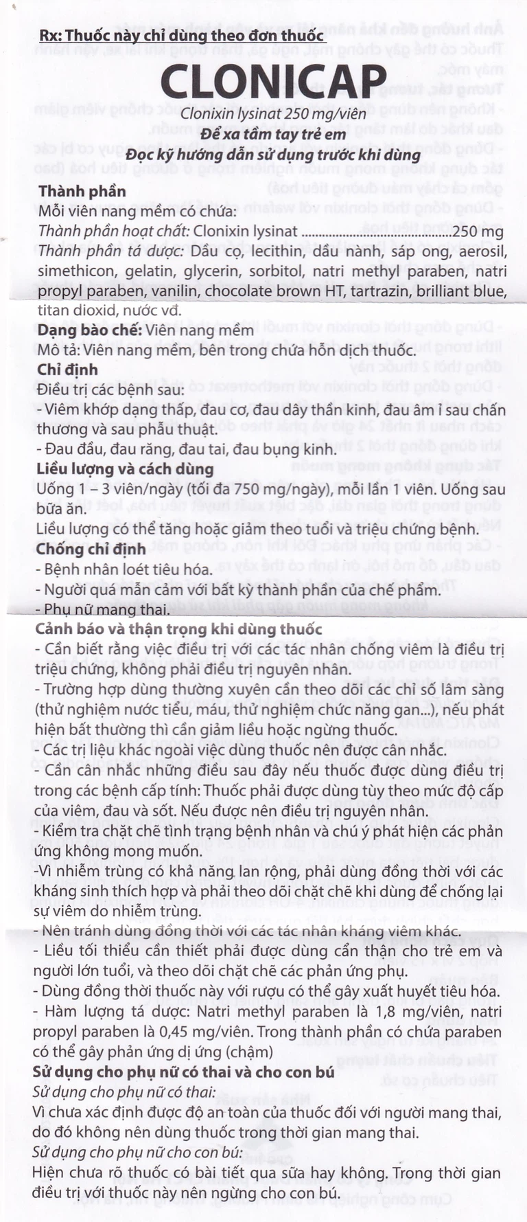 Cách dùng Thuốc Clonicap 250mg