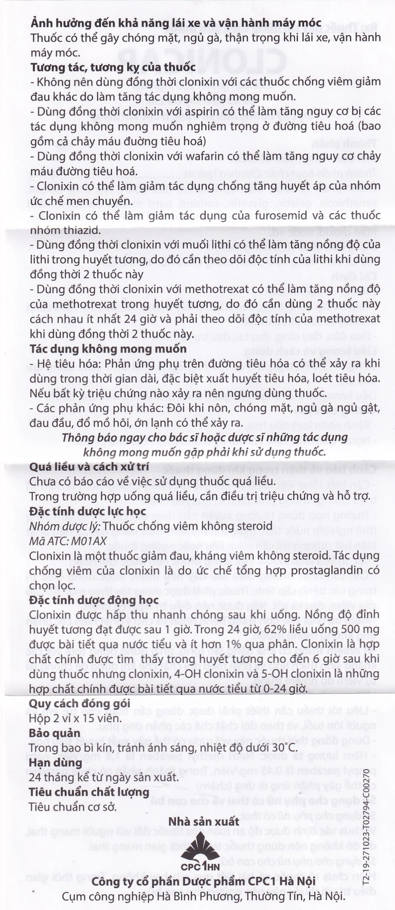 Không nên dùng đồng thời clonixin với các thuốc chống viêm giảm đau khác do làm tăng tác dụng không mong muốn.