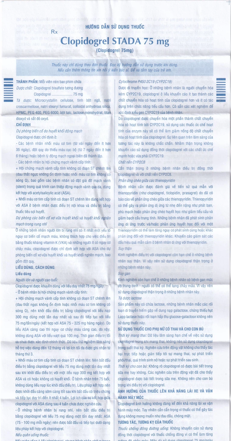 Clopidogrel dược khuyên dùng với liều duy nhất 75 mg/ngày.