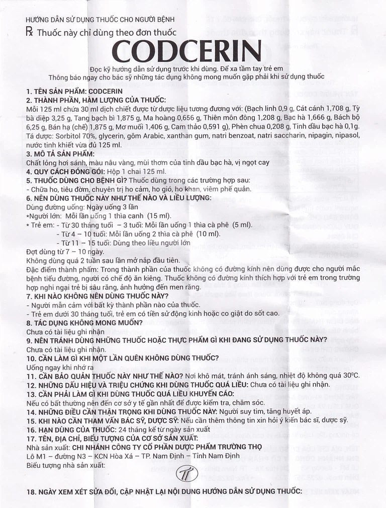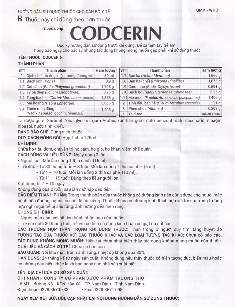 Thuốc Codcerin được chỉ định dùng trong các trường hợp chữa ho, tiêu đờm, chuyên trị ho cảm, ho gió, ho khan , viêm phế quản.