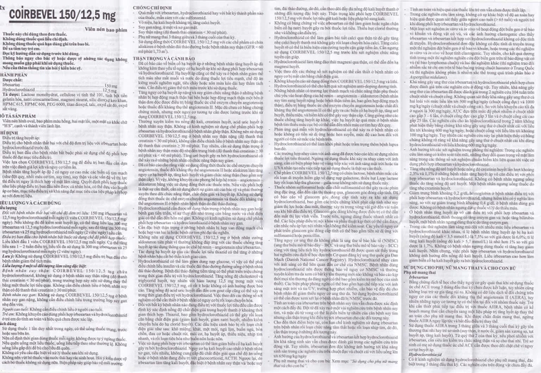 - Sử dụng đồng thời Coirbevel 150/12,5 mg với các chế phẩm có chứa aliskiren ở bệnh nhân đái tháo đường hoặc bệnh nhân suy thận (CFR < 60ml/phút/1,73 m2).