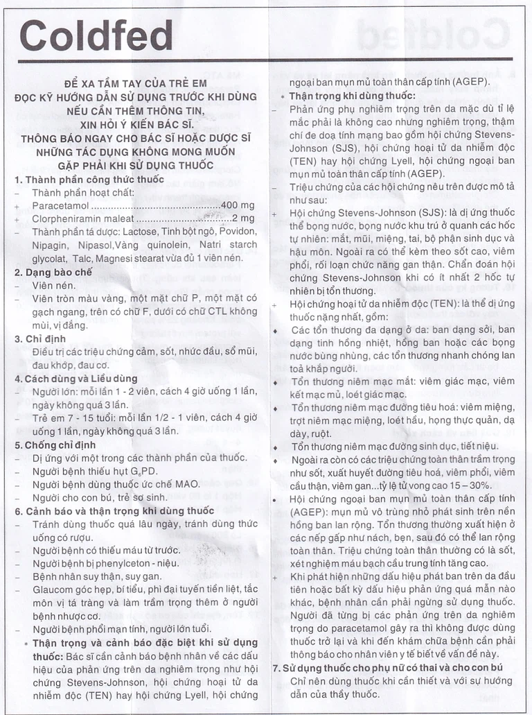 Khi sử dụng thuốc Coldfed, bạn có thể gặp các tác dụng không mong muốn (ADR).
