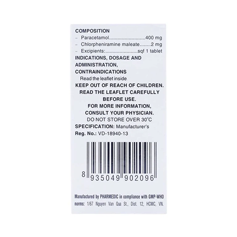 Paracetamol là một dẫn chất para-aminophenol có đặc tính giảm đau và hạ sốt. Paracetamol nâng ngưỡng đau để trị nhức đầu, đau cơ, đau khớp và bệnh liên quan đến cảm cúm.