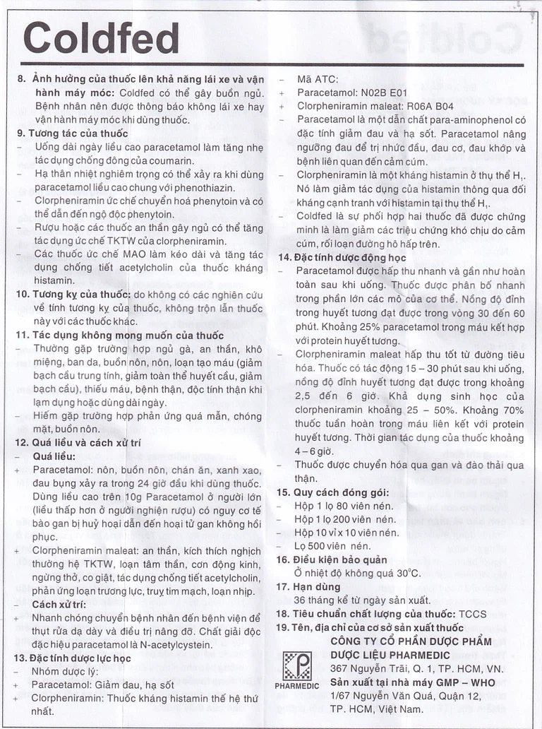 Coldfed có thể gây buồn ngủ. Bệnh nhân không nên lái xe hay vận hành máy móc khi dùng thuốc.