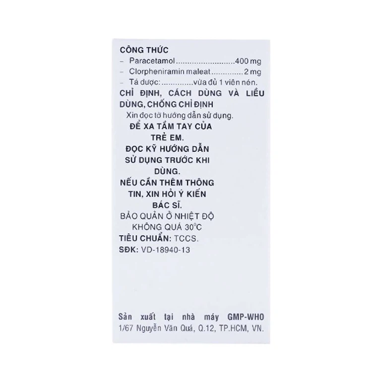 Ðiều trị các triệu chứng cảm, sốt, nhức đầu , sổ mũi, đau khớp, đau cơ.