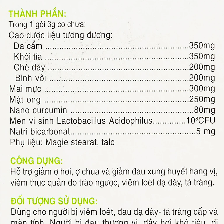 Nano Curcumin, Mật ong, Mai mực, Bình vôi, Chè dây, Lá khôi tía, Cao dạ cẩm