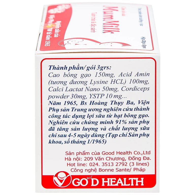 Mum Milk có chứa đầy đủ các dưỡng chất, giúp cải thiện chất lượng sữa mẹ, bổ sung các chất dinh dưỡng và kháng thể cần thiết cho sự phát triển trẻ em ở giai đoạn đầu đời. Thành phần cao bông gạo có hiệu quả trong việc kích thích sữa, tăng tiết sữa và tăng chất lượng ở mẹ ít sữa, mất sữa.