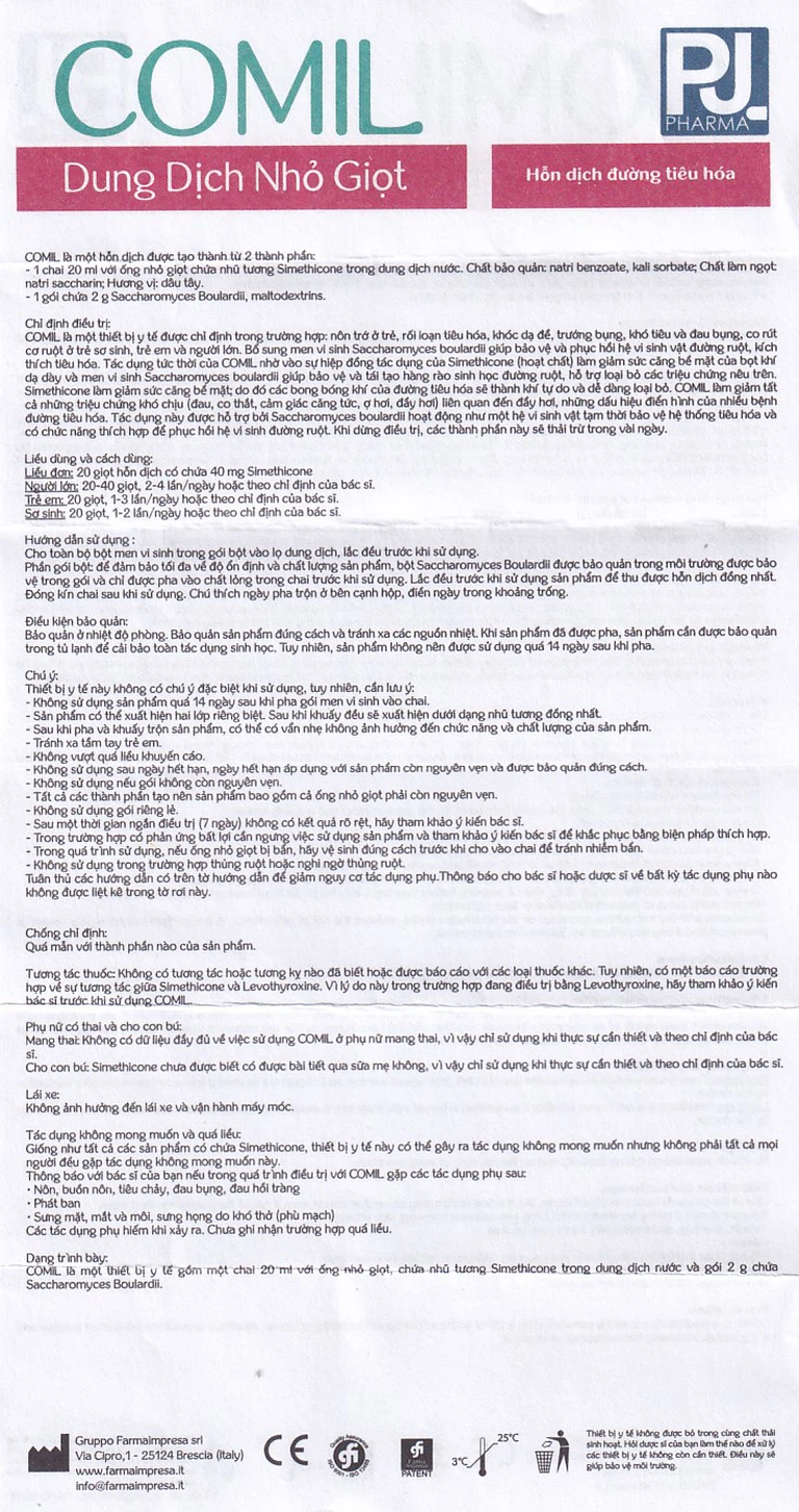 Dung dịch nhỏ giọt Comil PJ Pharma giảm rối loạn tiêu hóa, chướng bụng, đầy hơi, nôn trớ ở trẻ (20ml)