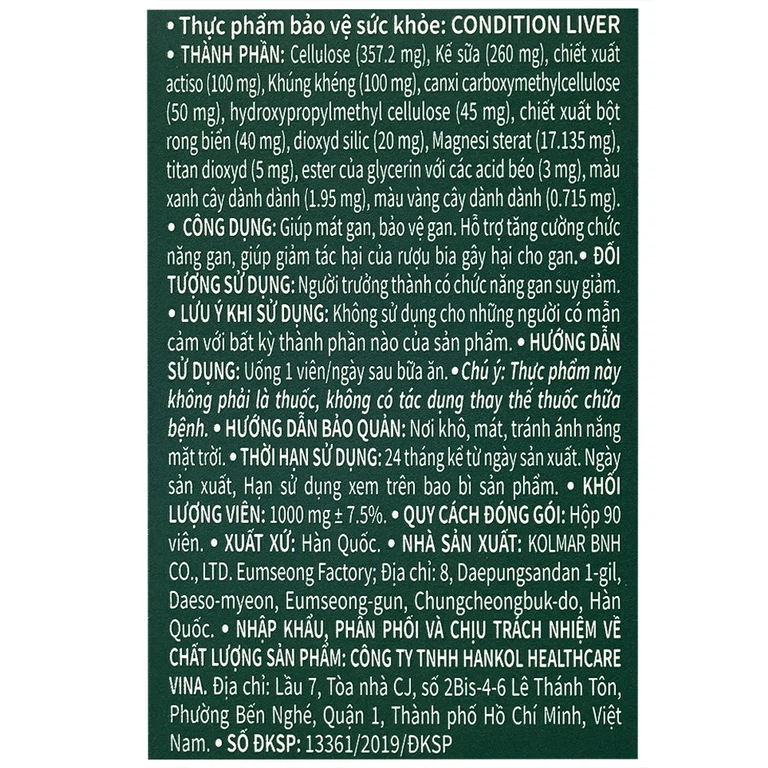 Công dụng của Thực phẩm bảo vệ sức khỏe Condition Liver