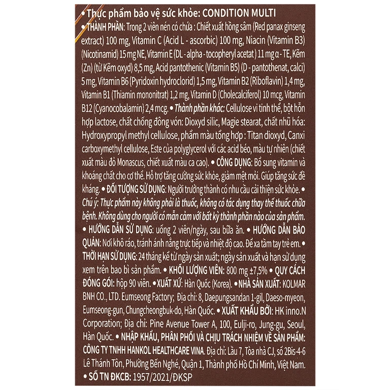 Thành phần của Thực phẩm bảo vệ sức khỏe Condition Multi