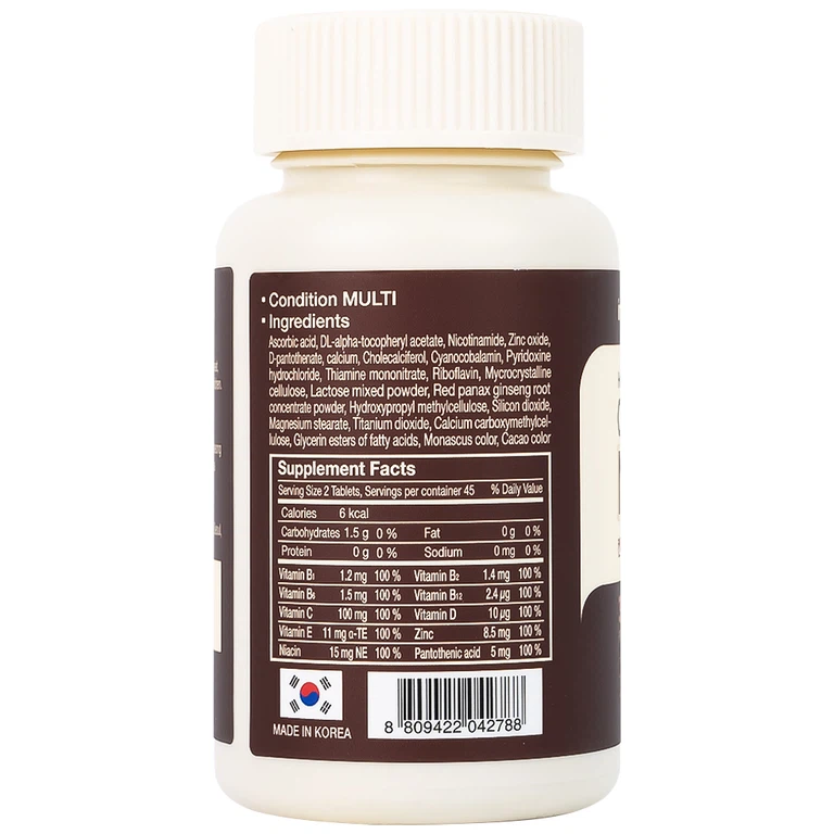 Condition Multi là một loại thực phẩm bảo vệ sức khỏe được phát triển bởi các chuyên gia dinh dưỡng hàng đầu. Sản phẩm chứa các thành phần được chiết xuất từ thiên nhiên bao gồm các vitamin, khoáng chất và các dưỡng chất thiết yếu khác. Condition Multi đảm bảo cung cấp đầy đủ dưỡng chất cần thiết cho cơ thể, hỗ trợ tăng cường sức đề kháng và hệ miễn dịch.