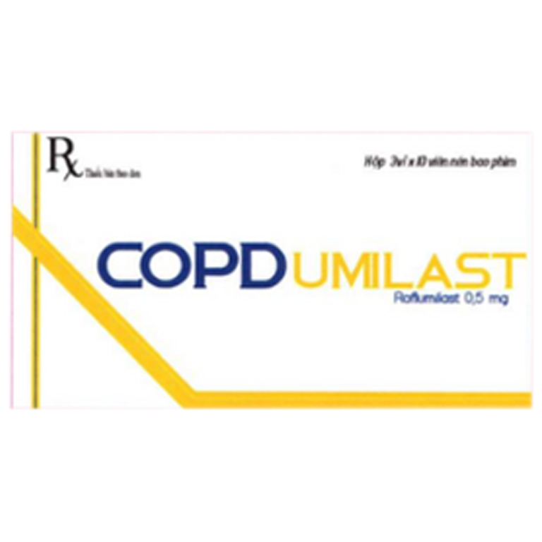 Thuốc Copdumilast được chỉ định để điều trị duy trì bệnh phổi tắc nghẽn mạn tính nặng (COPD) (FEV1< 50% sau khi dùng thuốc giãn phế quản) kèm theo viêm phế quản mạn tính ở người lớn với tiền sử có đợt cấp thường xuyên và được dùng phối hợp với thuốc giãn phế quản.