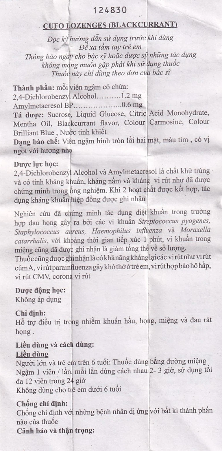 Thuốc Cufo dùng bằng đường miệng, dạng ngậm.