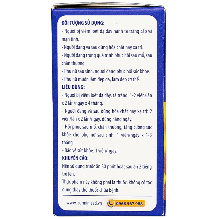 Với thành phần curcumin được sản xuất theo công nghệ Đức tốt gấp 3 lần curcumin thông thường, Curcumin Lead không chỉ mang lại nhiều công dụng cho người đau dạ dày mà còn cho sức khỏe của cả gia đình. Đây là sản phẩm đột phá trong dòng Curcumin khi bào chế thành công curcumin dạng lỏng vào bao dưới dạng viên nang mềm, mang lại khả năng hấp thụ nhanh và tối đa.