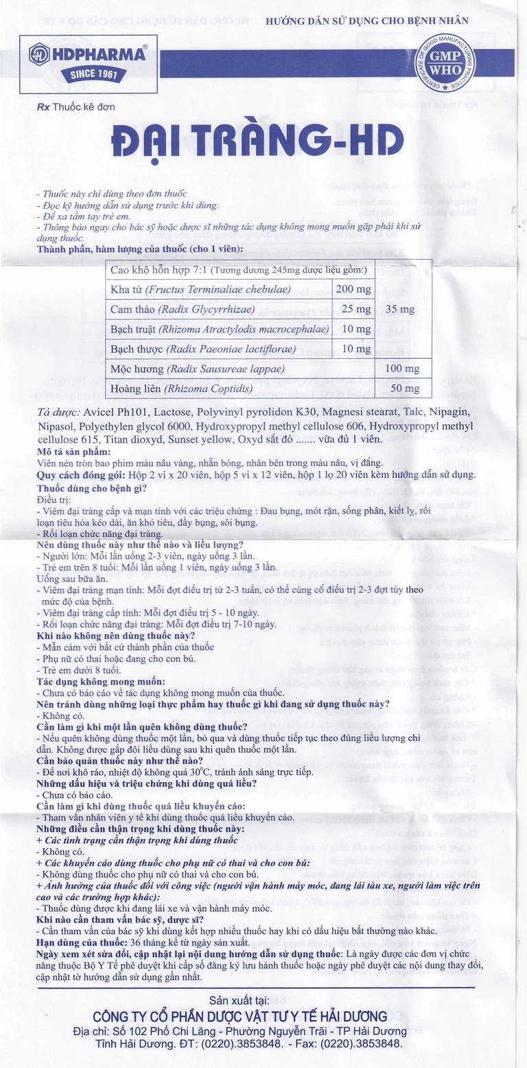 Đại Tràng HD chống chỉ định trong các trường hợp sau: