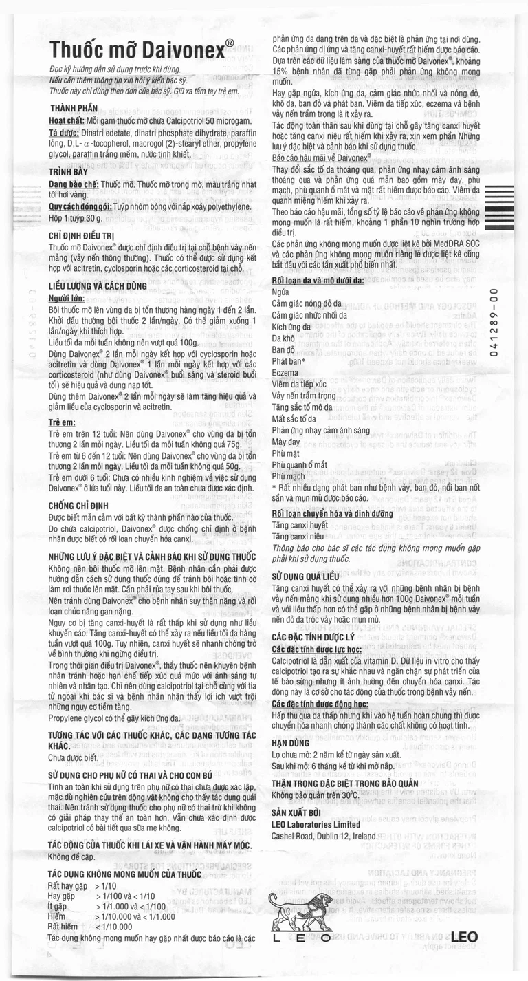 Tăng canxi huyết có thể xảy ra với những bệnh nhân bị bệnh vẩy nến mảng khi sử dụng nhiều hơn 100g Daivonex mỗi tuần và với liều thấp hơn có thể gặp ở những bệnh nhân bị bệnh vẩy nến đỏ da tróc vảy hoặc mụn mủ.