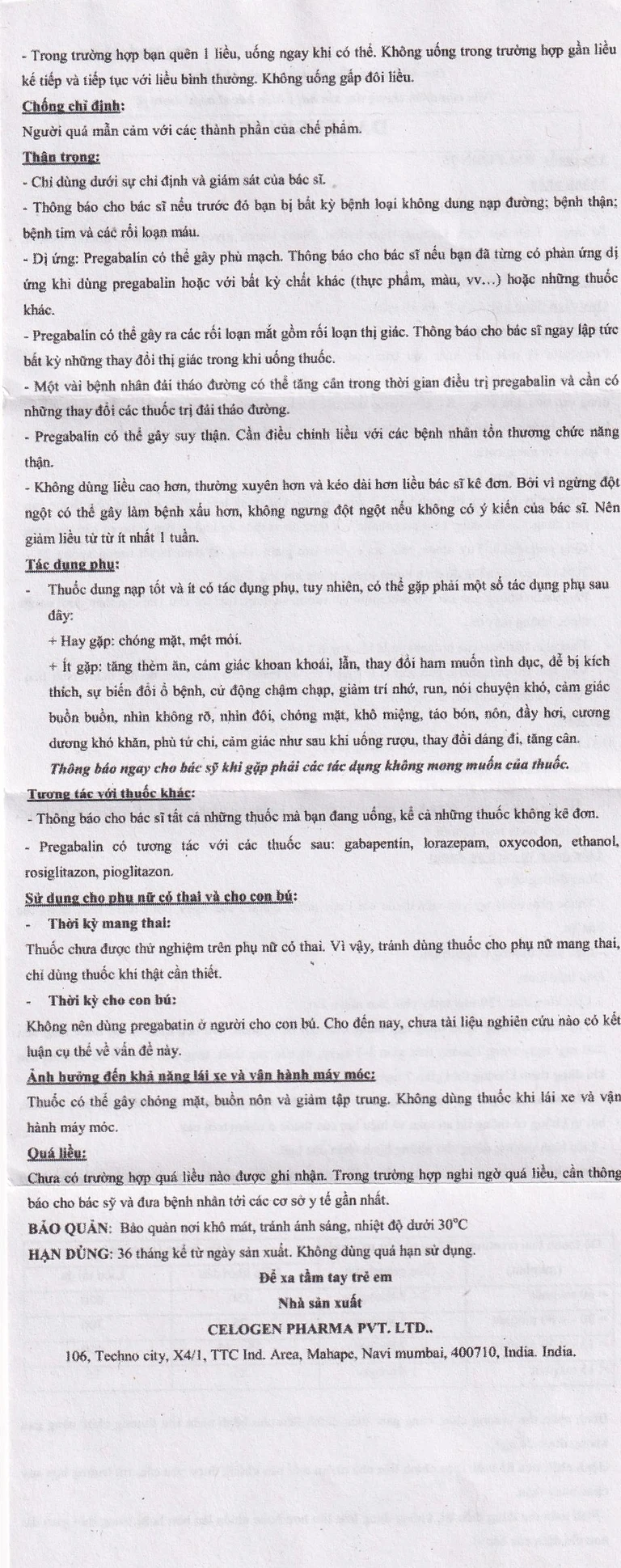 Pregabalin có tương tác với các thuốc sau: Gabapentin, lorazepam, oxycodon, ethanol, rosiglitazon, pioglitazon.
