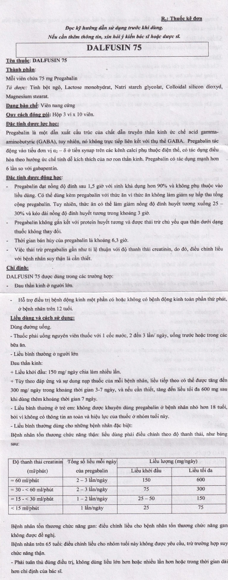 Dalfusin 75 dạng viên nang cứng dùng đường uống.
