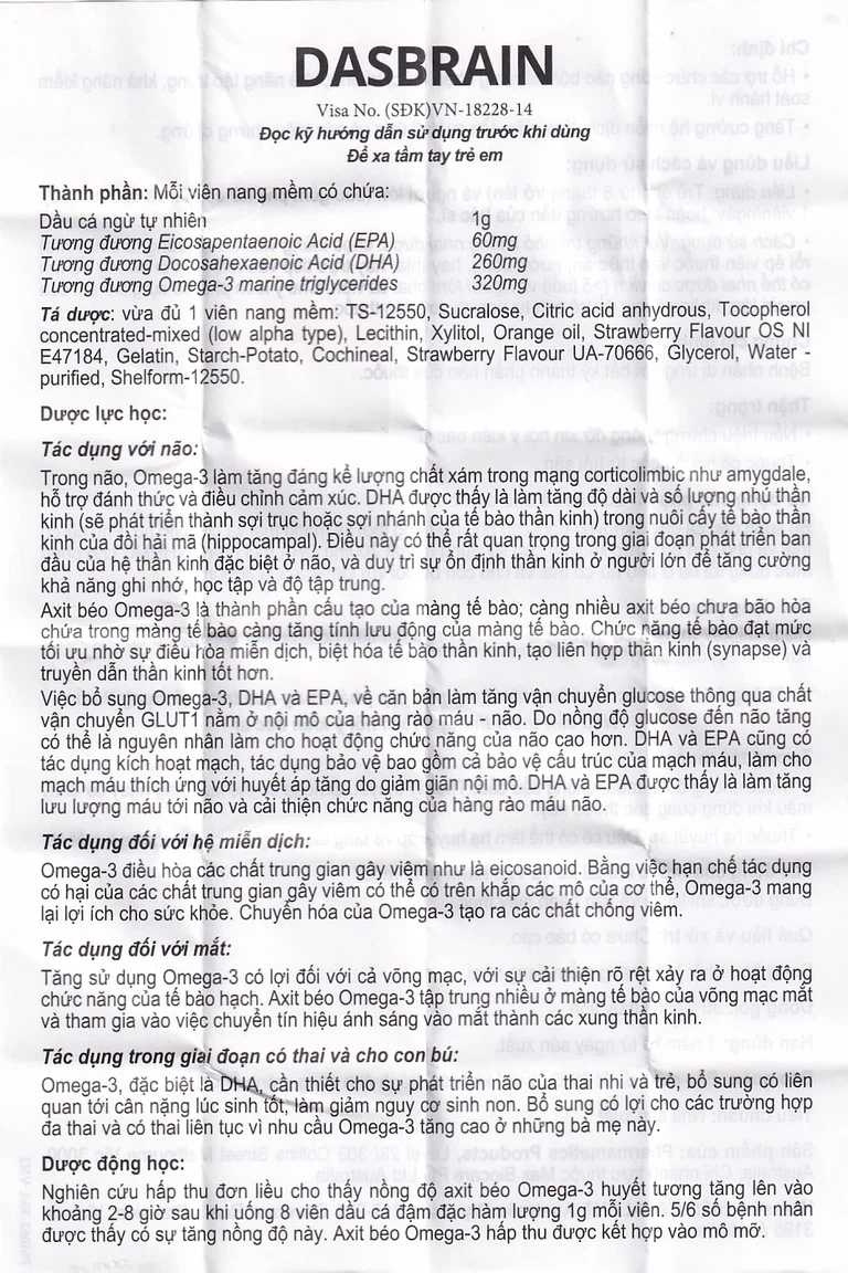 Bổ sung liều ngay khi nhớ ra. Tuy nhiên, nếu thời gian giãn cách với liều tiếp theo quá ngắn thì bỏ qua liều đã quên và tiếp tục lịch dùng thuốc Dasbrain. Không dùng liều gấp đôi để bù cho liều đã bị bỏ lỡ.