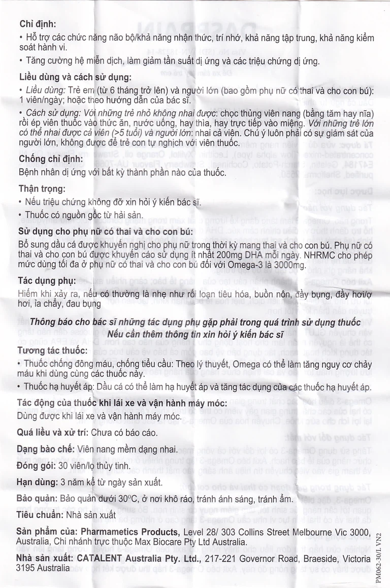 - Hỗ trợ các chức năng não bộ/khả năng nhận thức, trí nhớ, khả năng tập trung, khả năng kiểm soát hành vi.