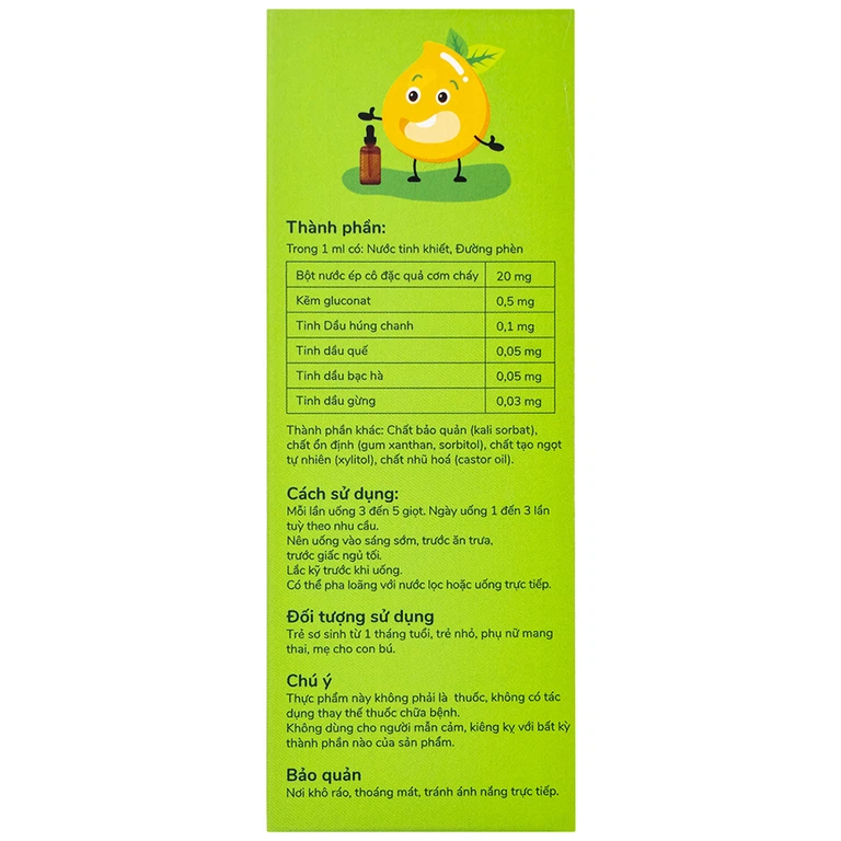 Mỗi lần uống 3 đến 5 giọt, ngày uống 1 đến 3 lần tùy theo nhu cầu.