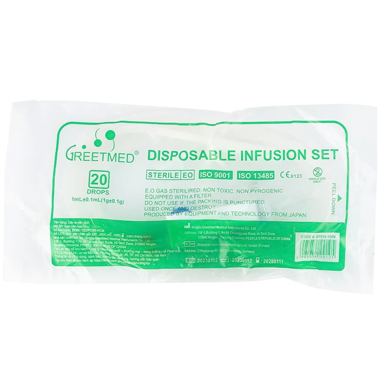 Dây truyền dịch kim cánh bướm Greetmed 22g dùng để truyền dịch cho bệnh nhân
