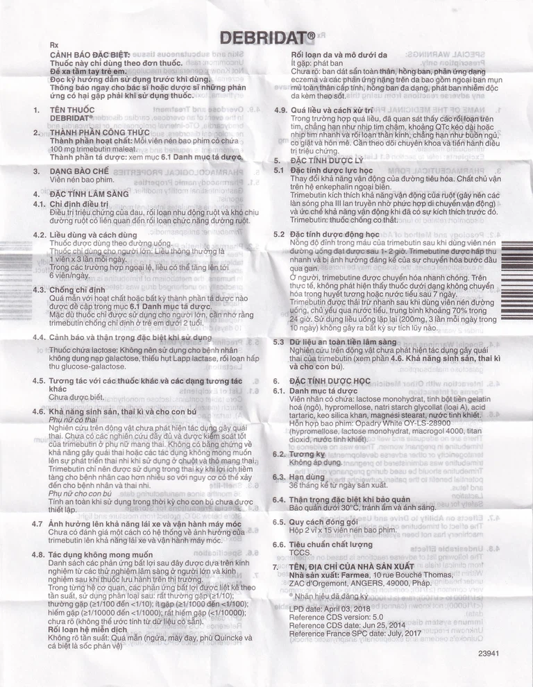 Thuốc Debridat chống chỉ định dùng debridat cho những bệnh nhân mẫn cảm với trimebutin maleat hoặc bất cứ thành phần nào khác của thuốc.