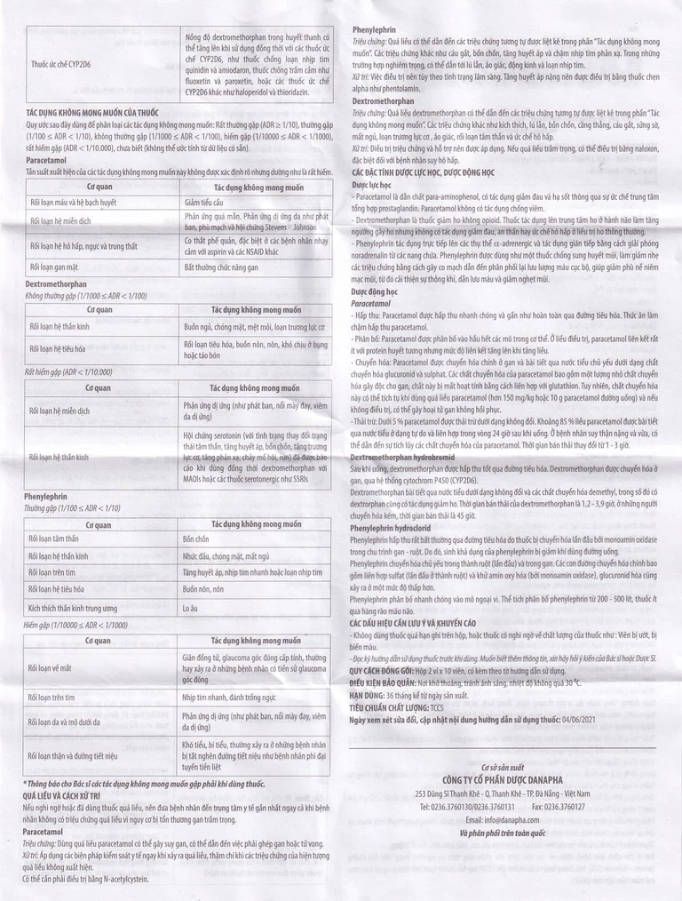Thuốc có chứa paracetamol, dextromethorphan, thận trọng ở bệnh nhân suy thận, suy gan. Tác dụng không mong muốn của paracetamol đối với gan tăng ở những bệnh nhân đang bị các bệnh về gan.