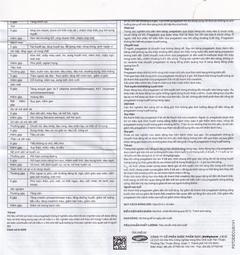 Đã có báo cáo về phản ứng quá mẫn từ thực tế sử dụng thuốc, bao gồm các trường hợp phù mạch. Cần ngay lập tức ngừng dùng pregabalin nếu có triệu chứng phù mạch (như sưng đường hô hấp trên, quanh miệng và mặt).