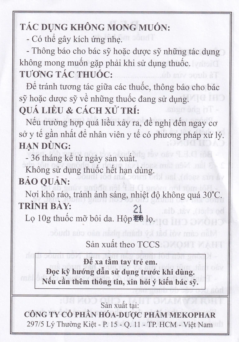 Không nên bôi thuốc gần mắt, mũi. Nếu thuốc dính vào mắt, mũi phải rửa kỹ với nước hay nước ấm.