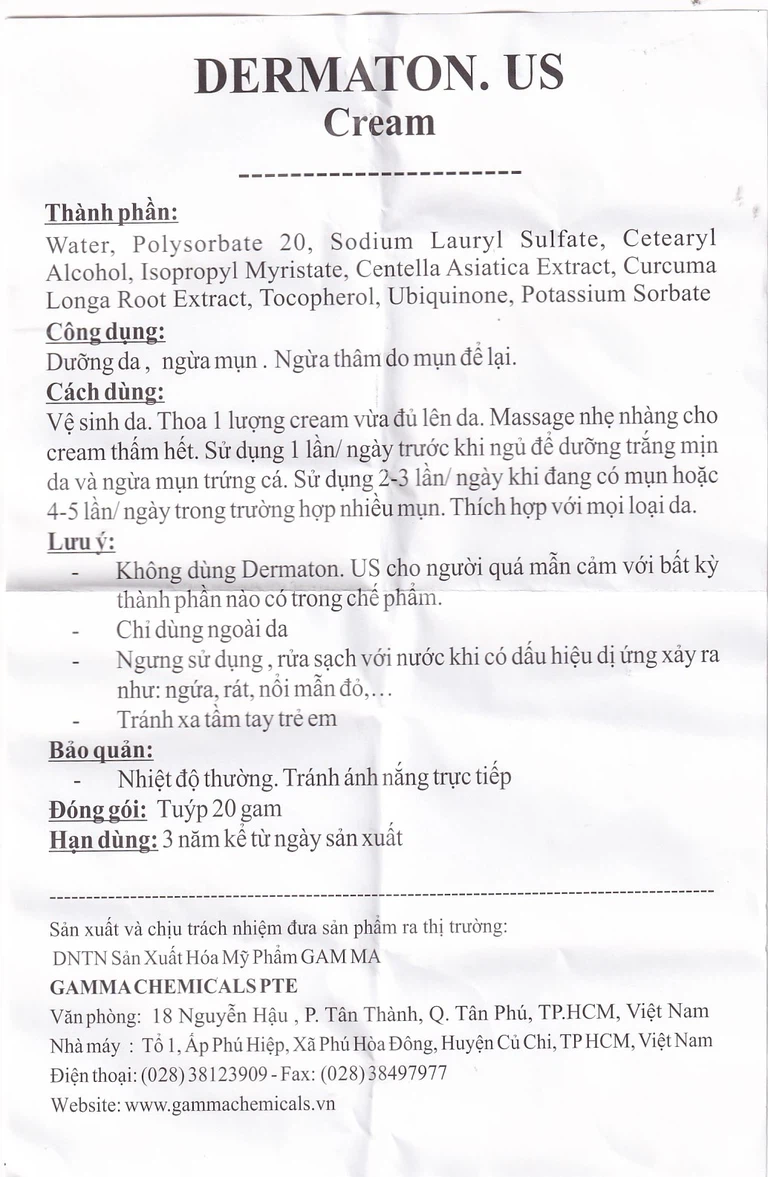 Gamma Chemicals Pte Dermaton.us có khả năng thẩm thấu qua da, giúp dưỡng da, ngăn ngừa sự xuất hiện của các loại mụn và các vết thâm do mụn để lại, từ đó sẽ giúp bạn xóa tan nỗi lo về mụn.