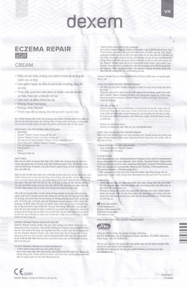 Dexem Eczema Repair Cream là giải pháp an toàn không corticoid với viêm da cơ địa, giảm kích ứng da, ngứa, rát, đỏ, viêm, sử dụng an toàn trên mọi đối tượng.