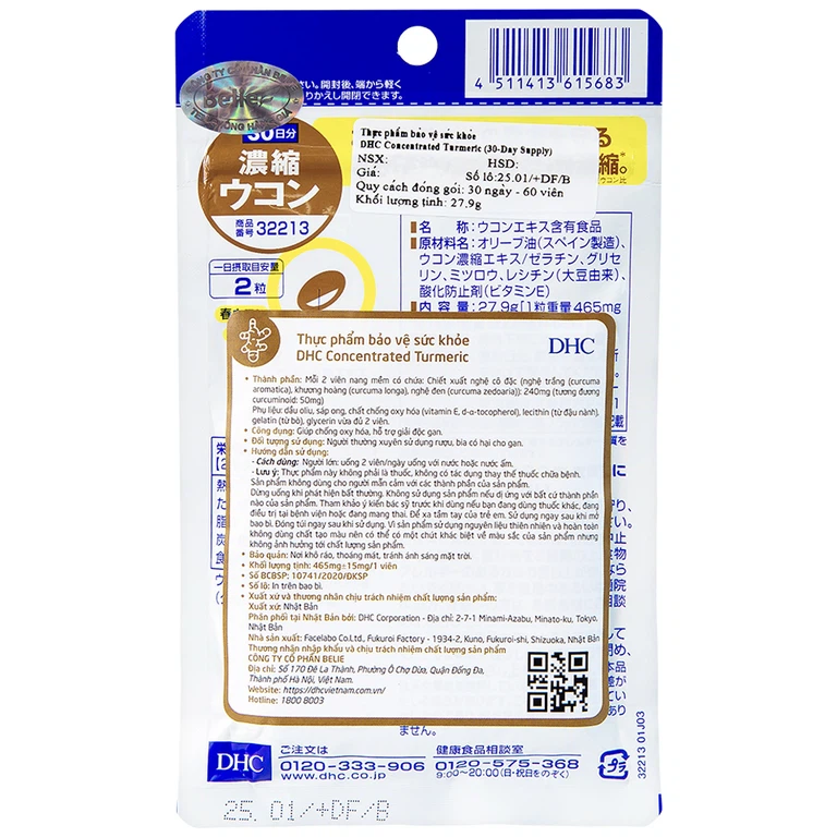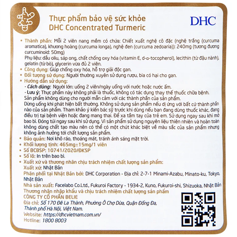 DHC Concentrated Turmeric hỗ trợ chống oxy hóa, hỗ trợ giải độc gan.