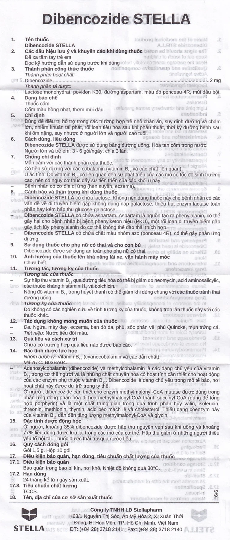 Công dụng của Thuốc cốm Dibencozide