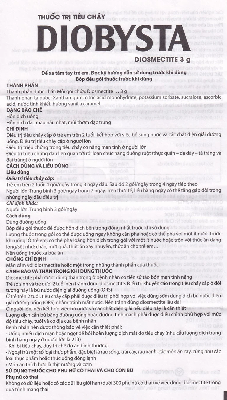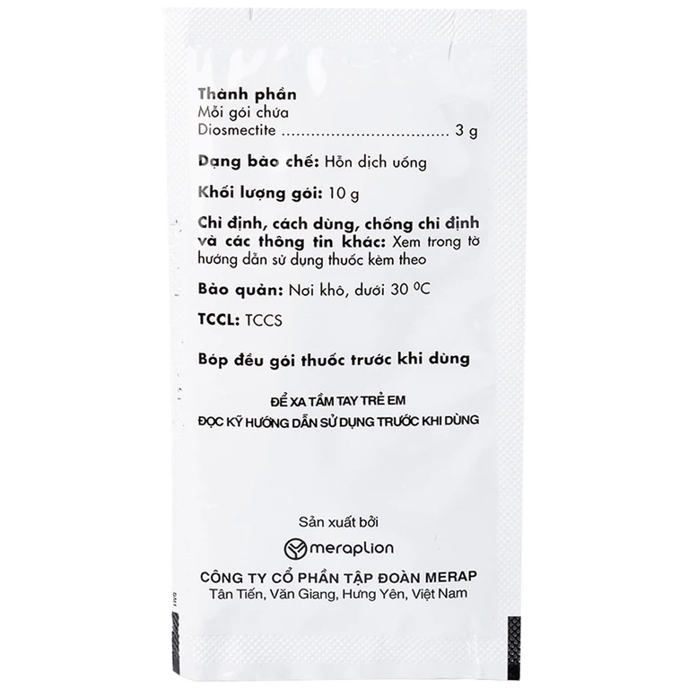 Thuốc gói Diobysta Meraplion dùng đường uống. Bóp đều gói thuốc để được hỗn dịch bên trong đồng nhất trước khi sử dụng.